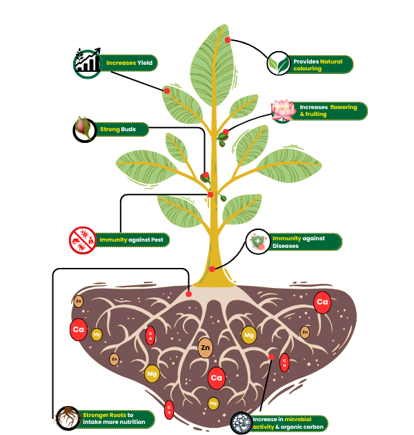 Boosts overall crop productivity by enhancing nutrient absorption and plant health.